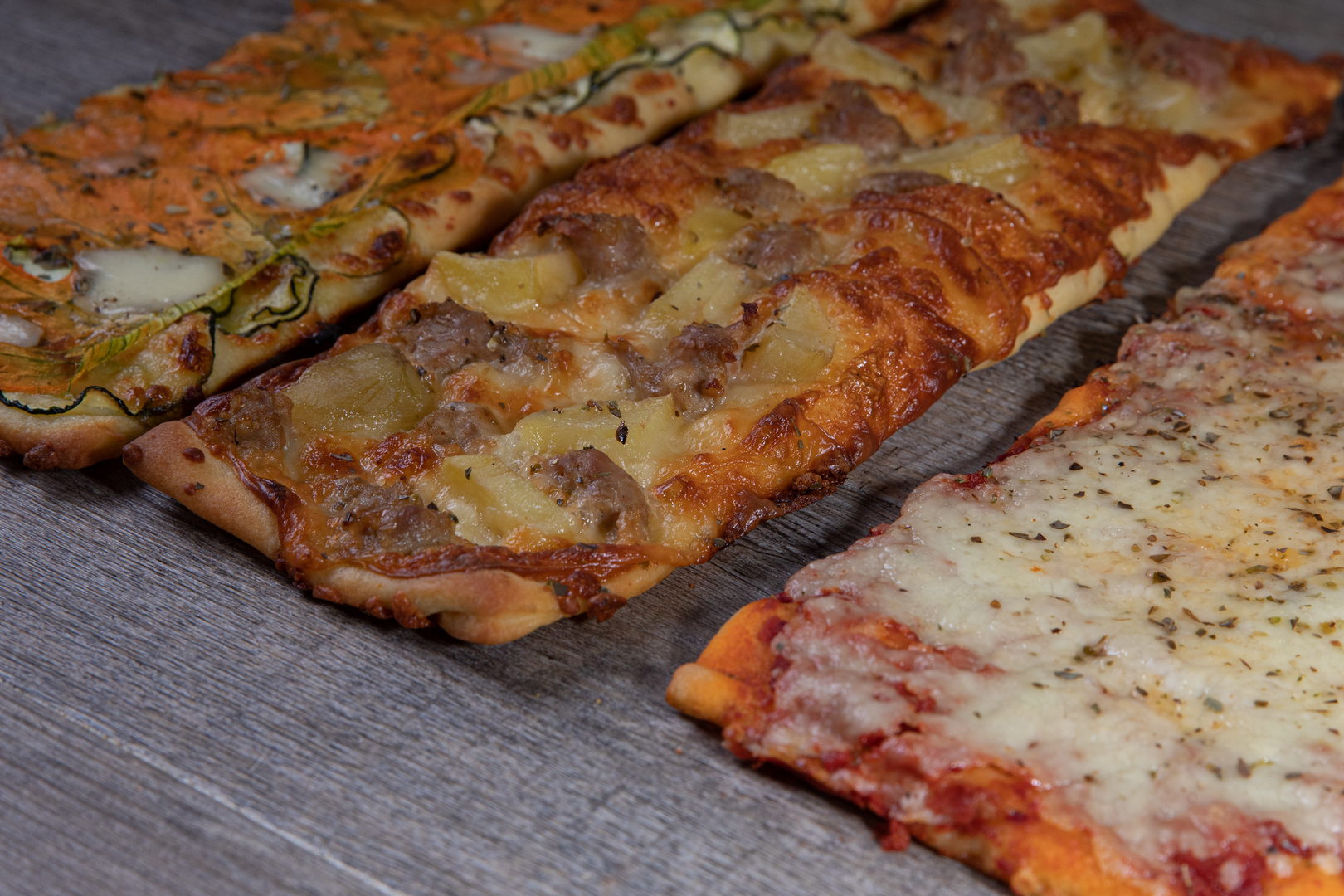 Semplici e genuine, preparate con farine selezionate e lievito naturale. Dopo ore di lenta lievitazione, diventano leggere, soffici e irresistibili. Condite con ingredienti freschi e classici, custodiscono i sapori della tradizione italiana.